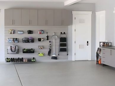 Includes: clean out garage floor and put belongings in temporary storage • fully grind concrete surface, thoroughly clean, then patch where needed • installation of vapor barrier/primer • installation of self leveling epoxy with pigment or vinyl flakes • installation of clear UV resistant topcoat used as armor plating • reinstall contents that were stored.